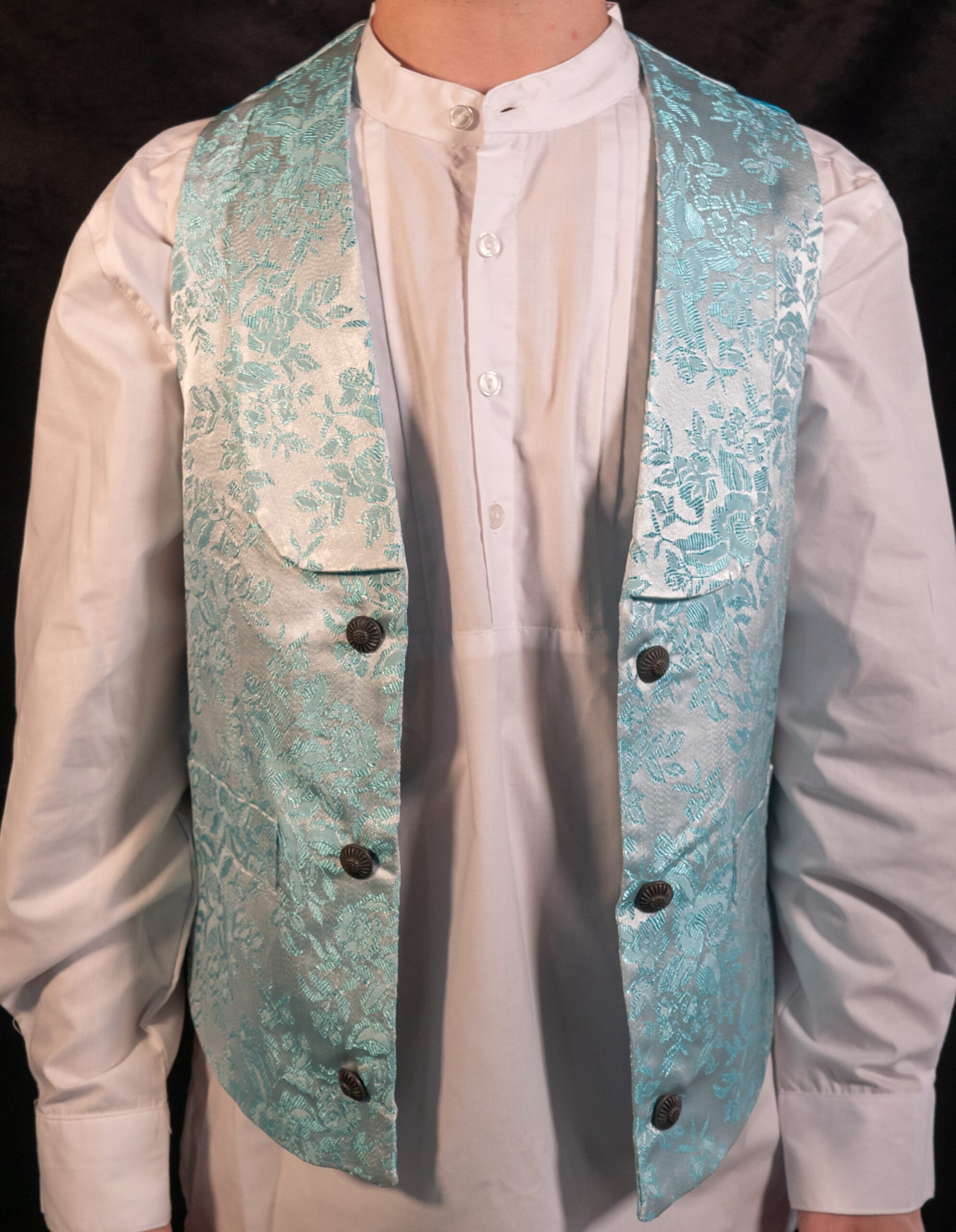 Chaleco brocado de flores, elegante y tradicional, perfecto para realzar el traje regional murciano con un toque distinguido.
