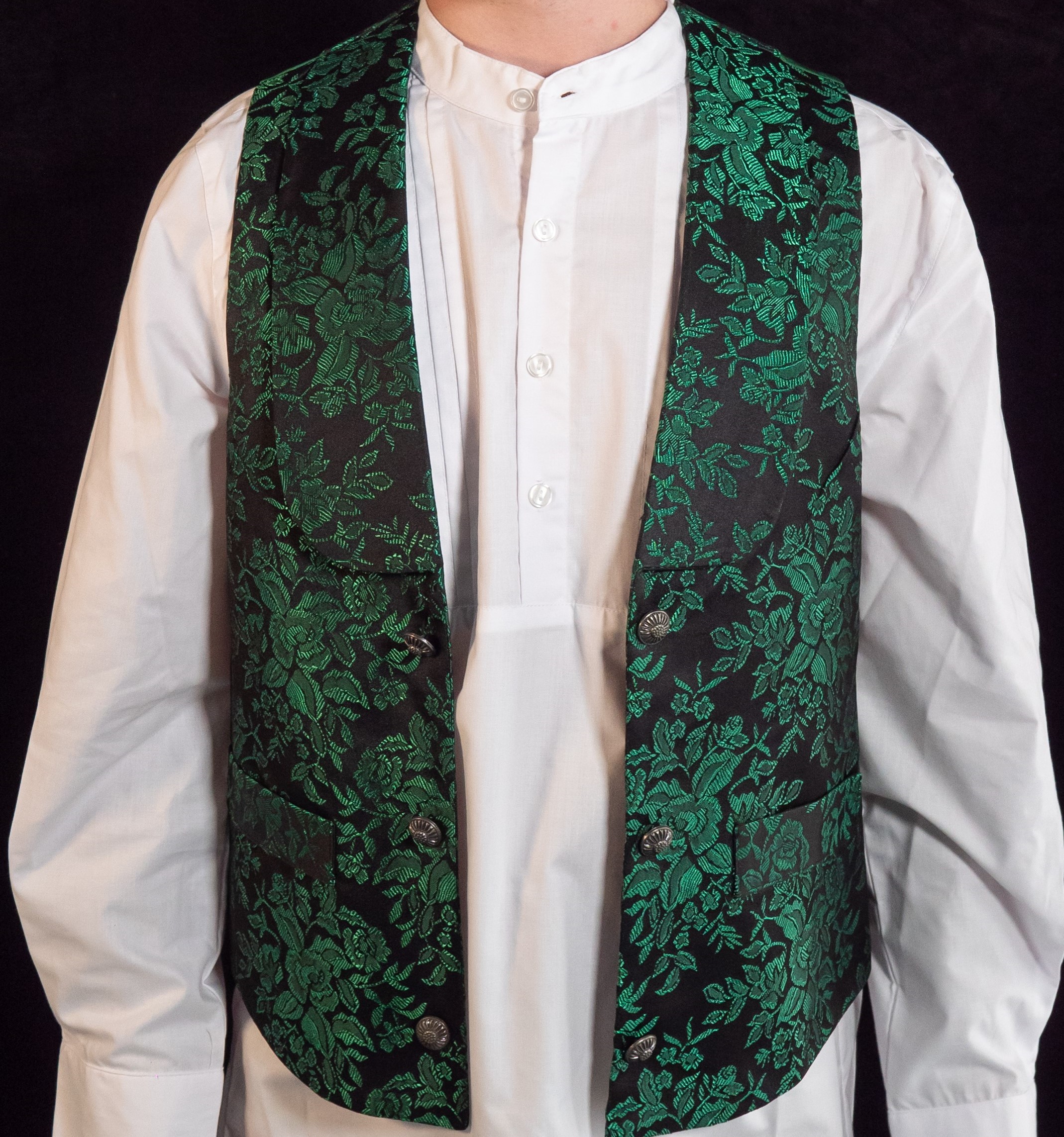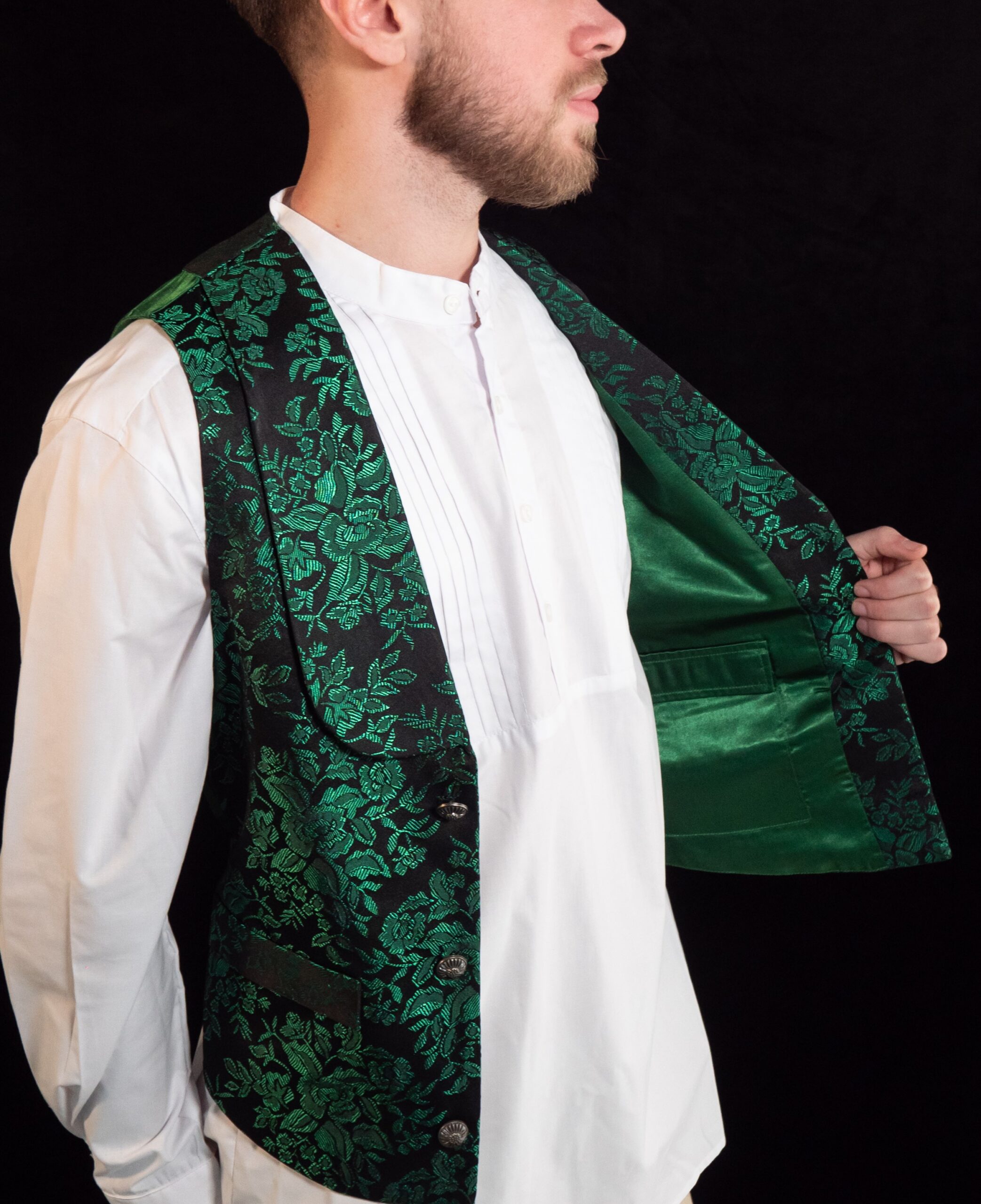 Chaleco brocado de flores, elegante y tradicional, perfecto para realzar el traje regional murciano con un toque distinguido.
