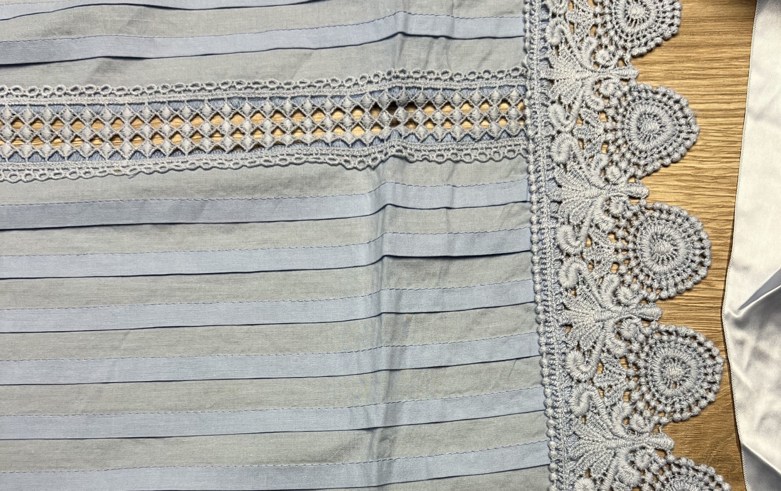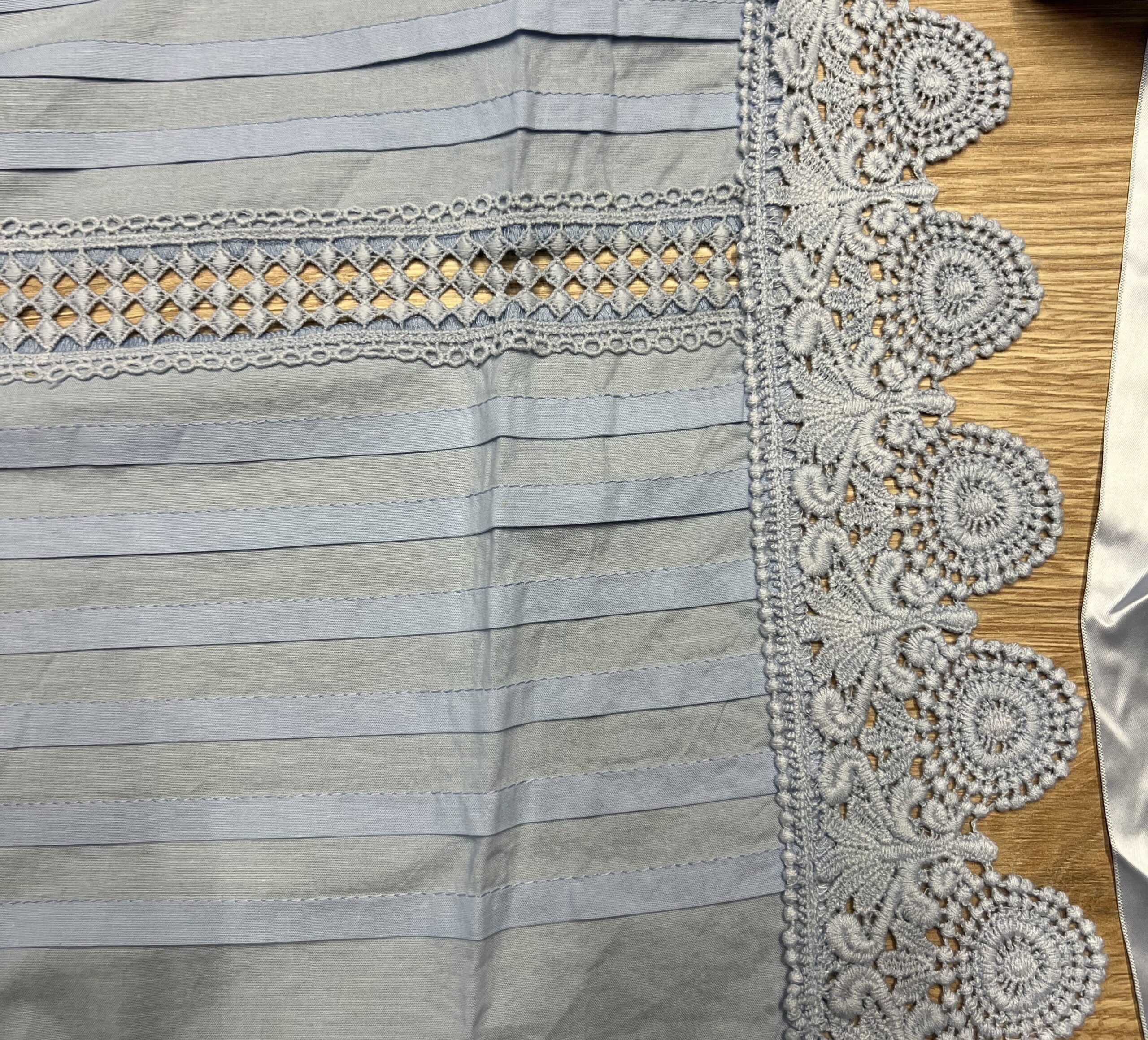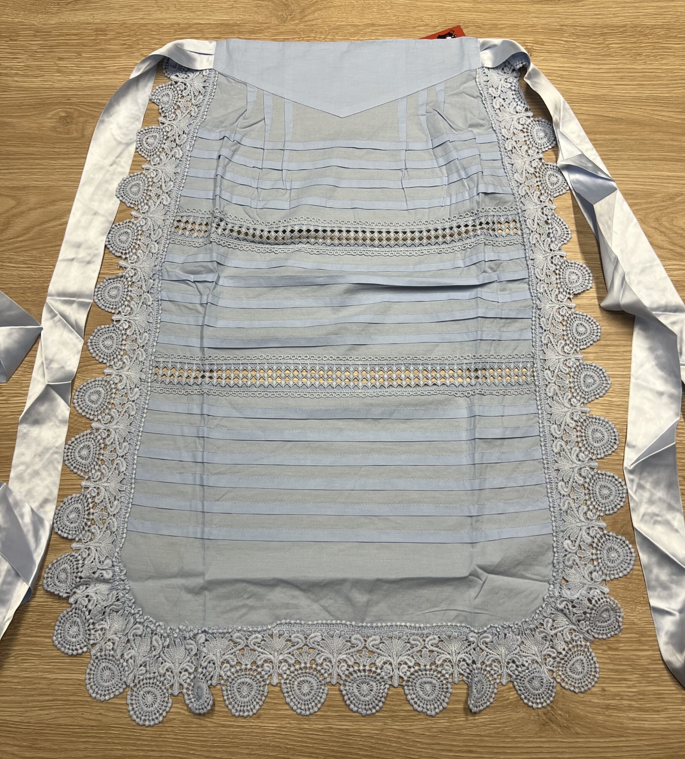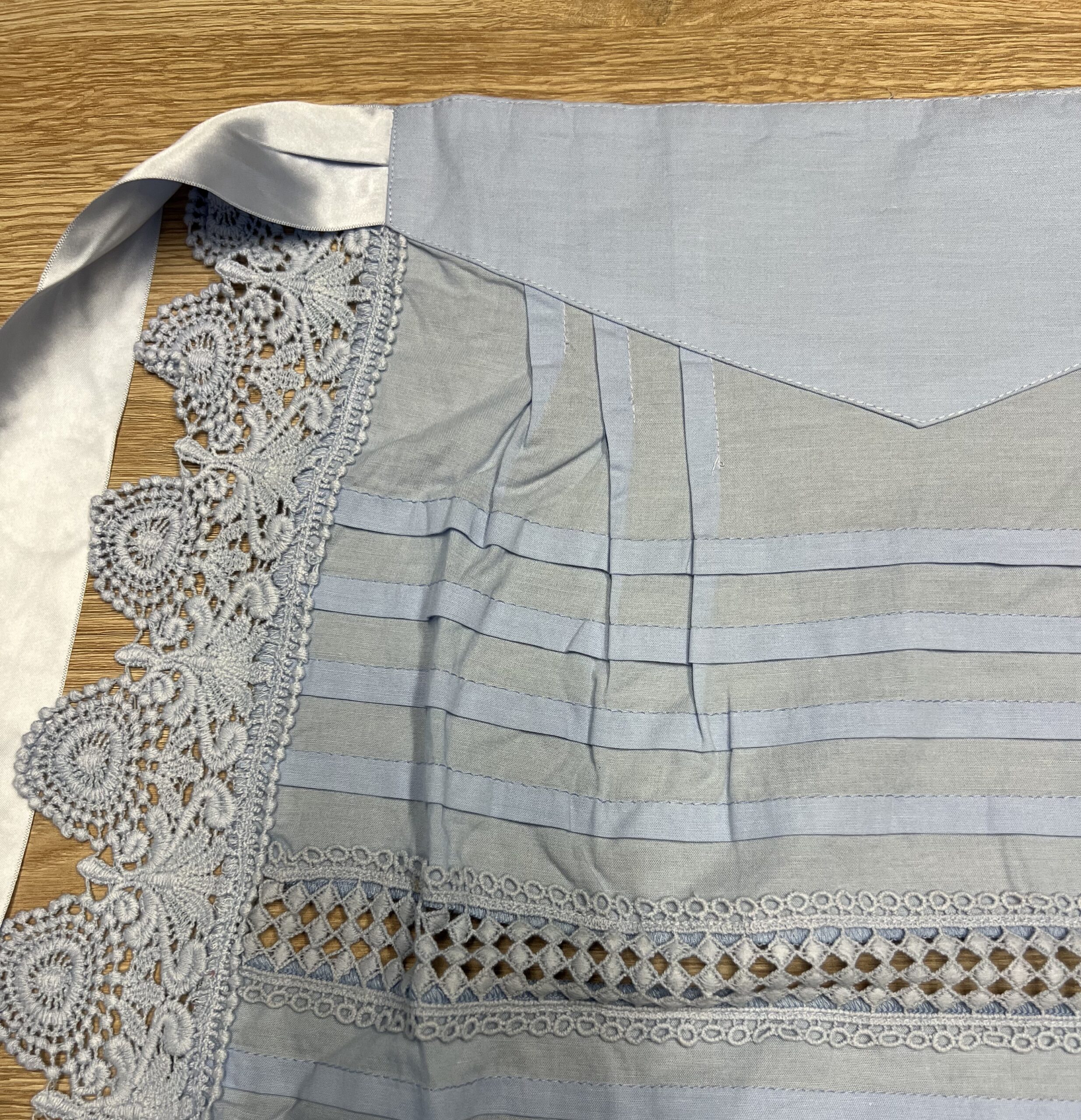 Delantal de hilo azul claro.