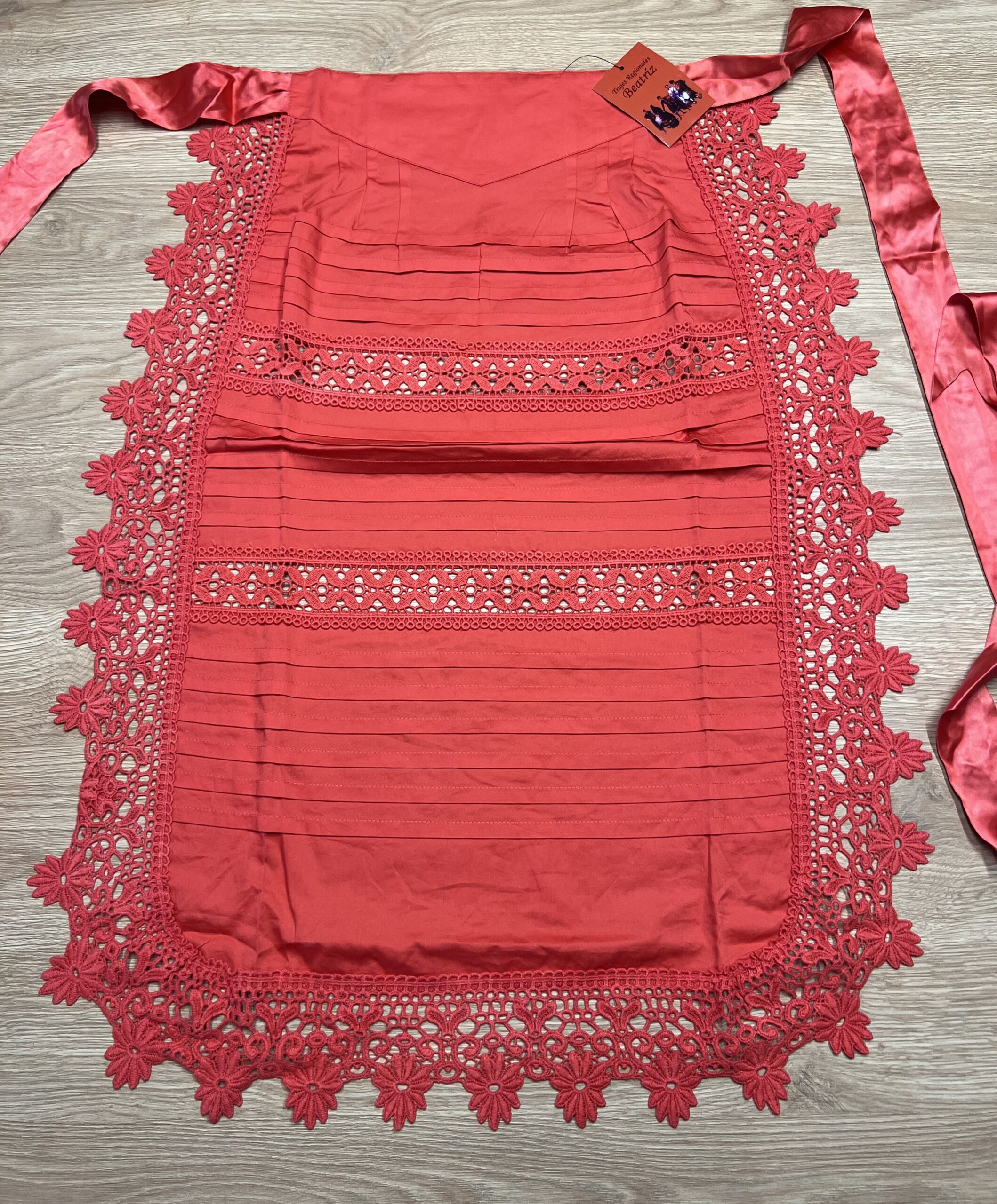 Delantal de hilo ideal para complementar con zagalejos o refajos.