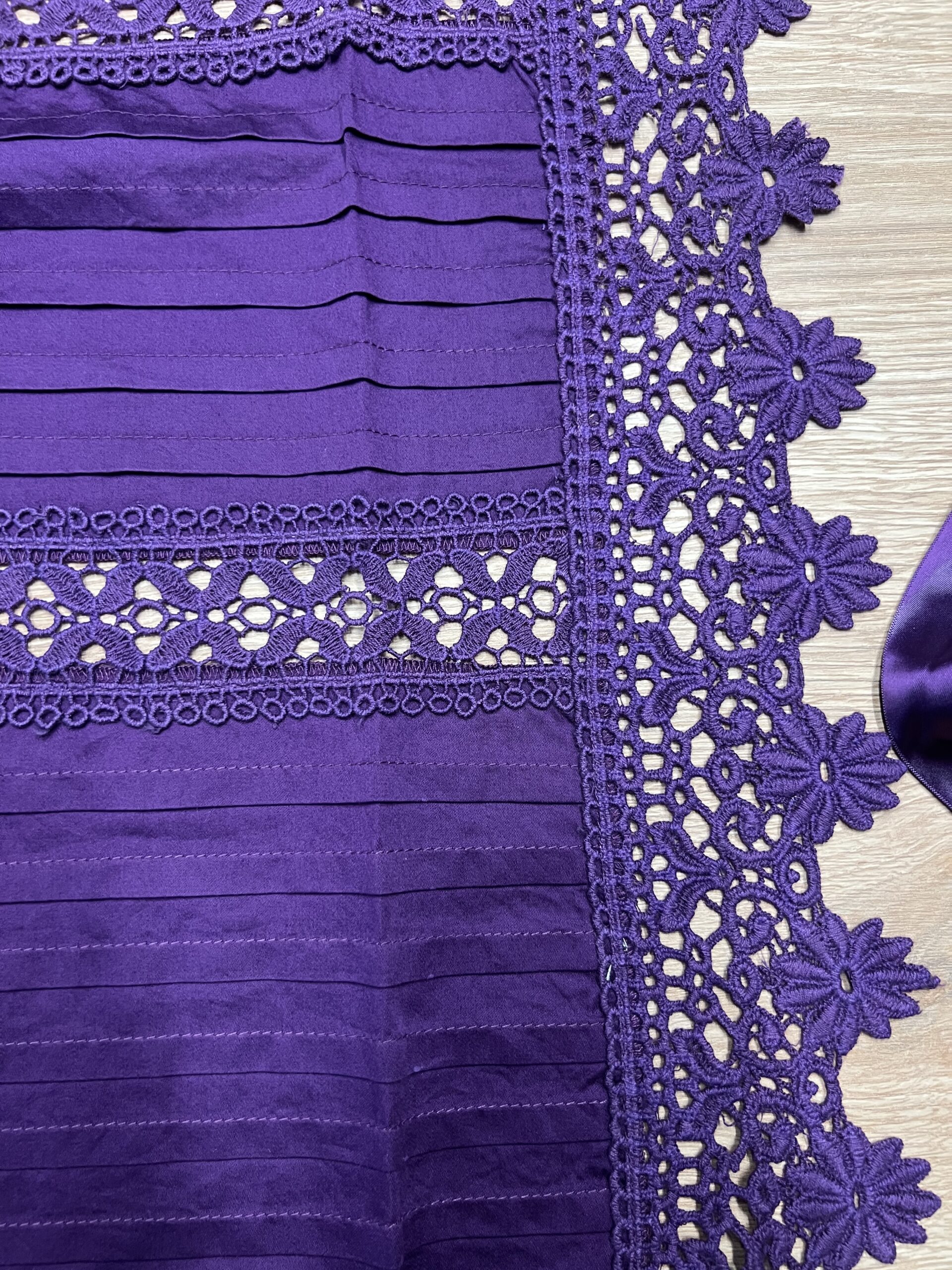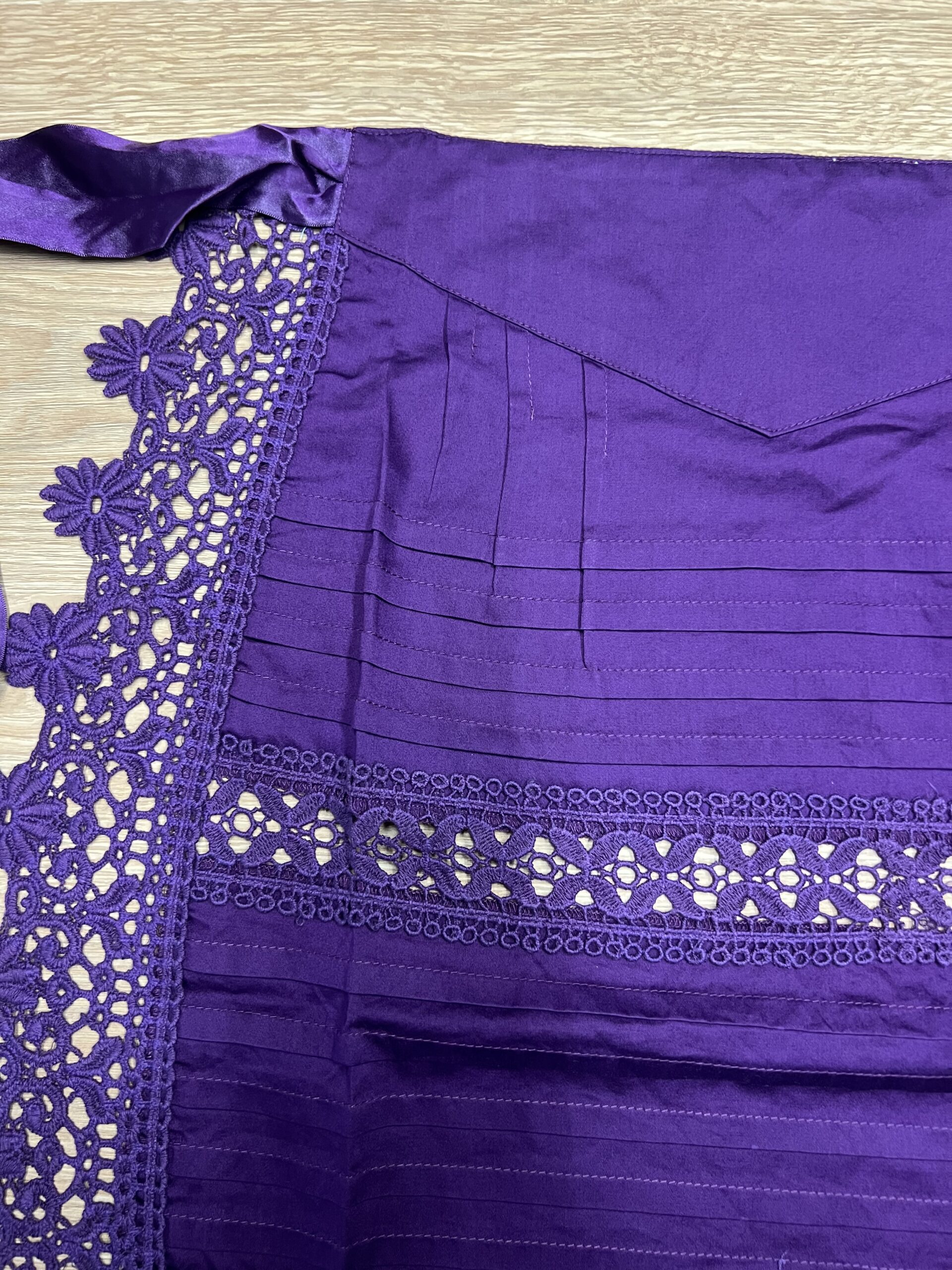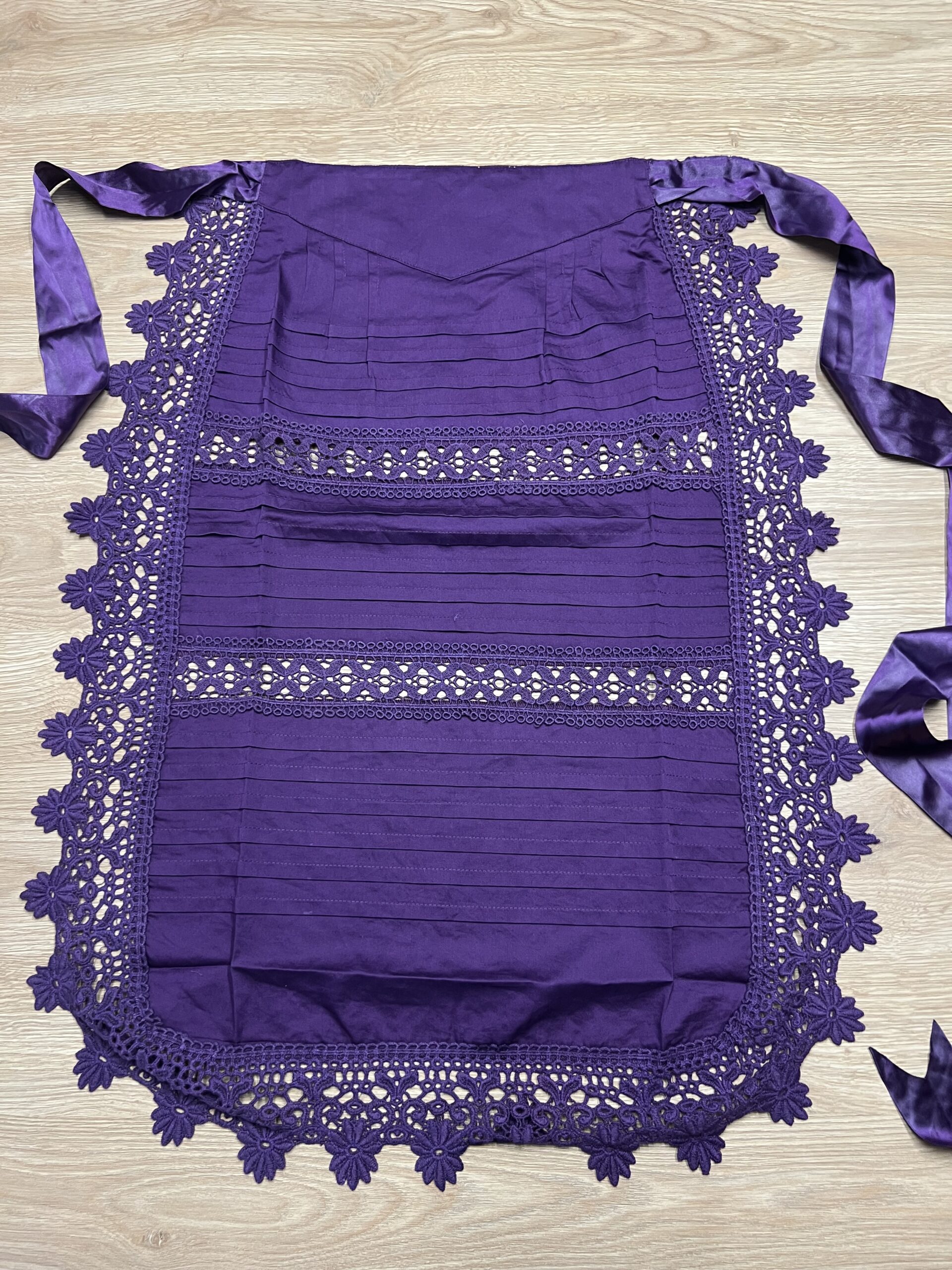 Delantal de hilo lila.