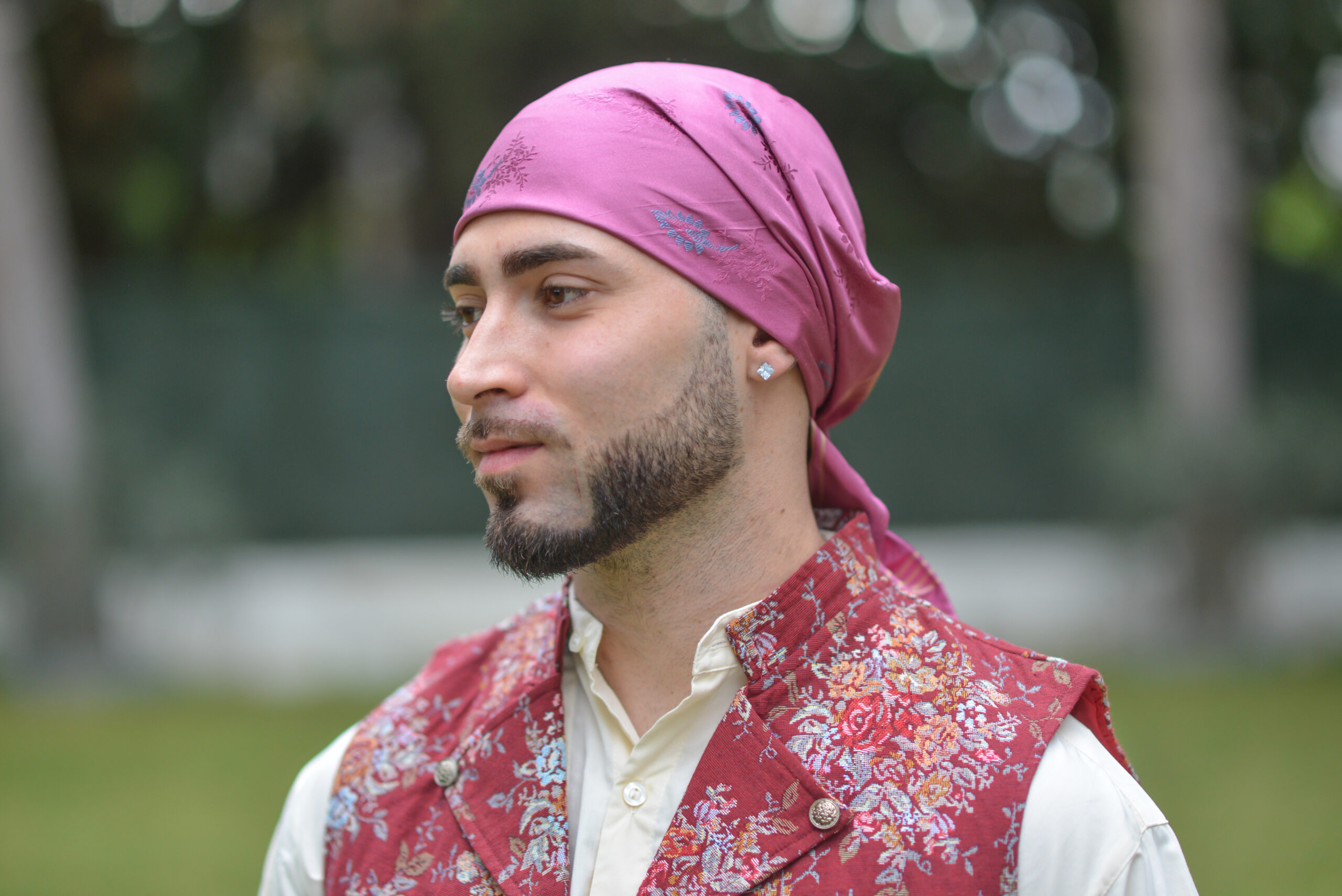 El pañuelo de seda es un complemento tradicional imprescindible en la indumentaria regional murciana. Confeccionado en seda de alta calidad, destaca por su suavidad, brillo y caída natural. Sus diseños y colores aportan elegancia y distinción al traje huertano, siendo perfecto para lucir en fiestas populares, romerías y eventos culturales. Una pieza atemporal que realza la autenticidad y el carácter artesanal del conjunto tradicional.