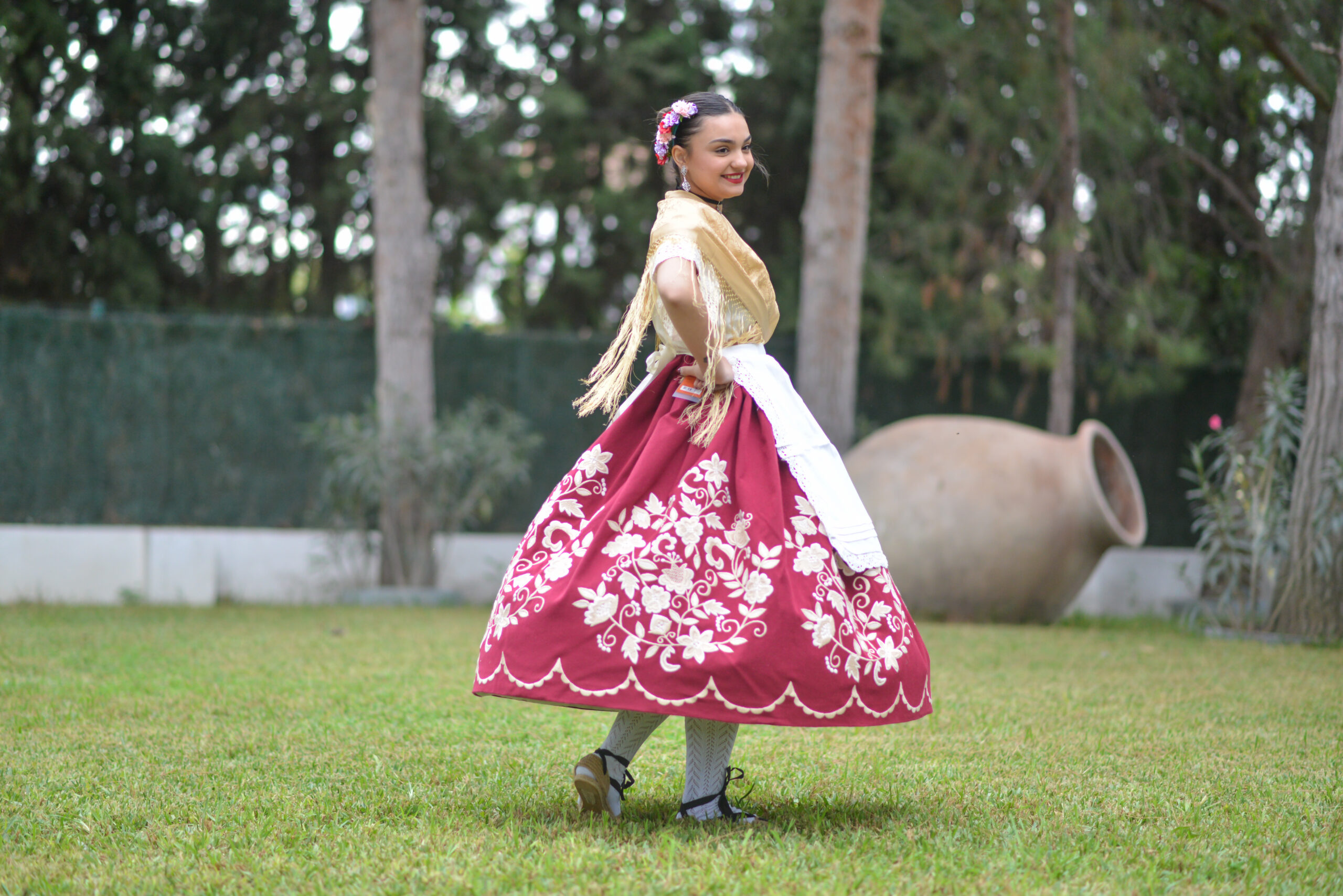 Tocado de flores inspirado en la tradición del traje regional de Murcia, diseñado para aportar frescura, color y armonía al conjunto. Su composición floral realza la belleza del atuendo y añade un toque distintivo.